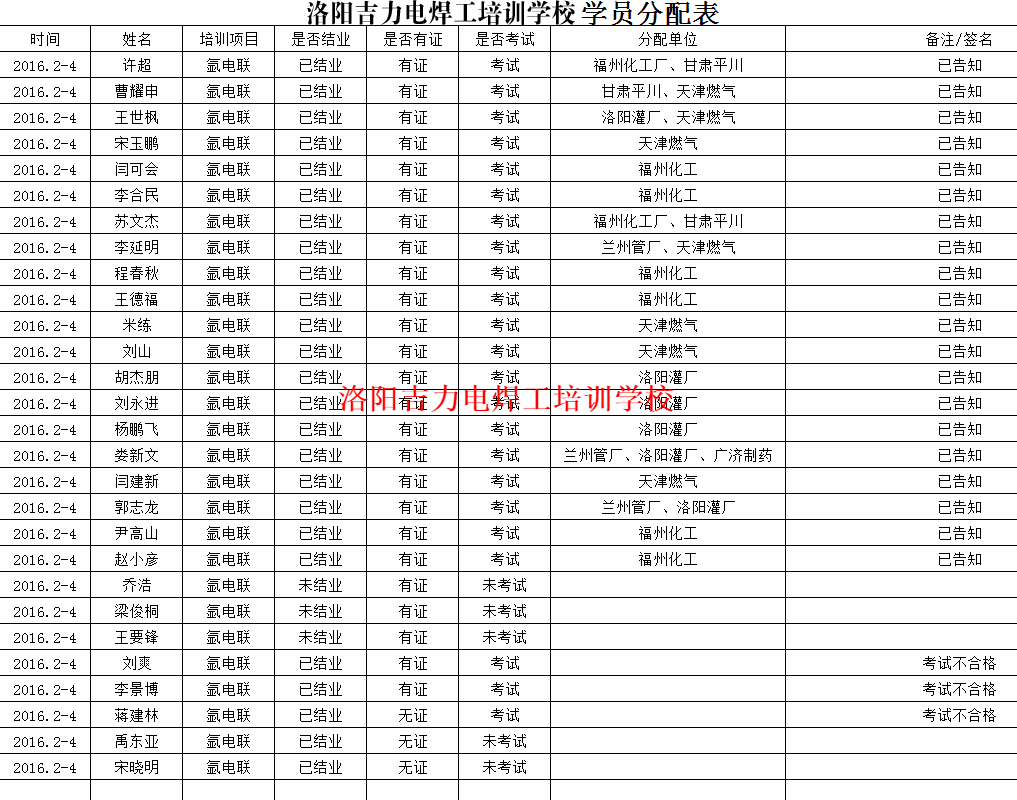 工作分配介紹要求: 1.已結業學員考試合格、有焊工證,人品道德良好無不良記錄者均免費考試。 2.培訓未滿15天學員,考試合格、有焊工證,人品道德良好無不良記錄者,自費考試。 3.社會人員,考試合格,有焊工證,人品道德良好無不良記錄者,參加招聘考試費用自費。